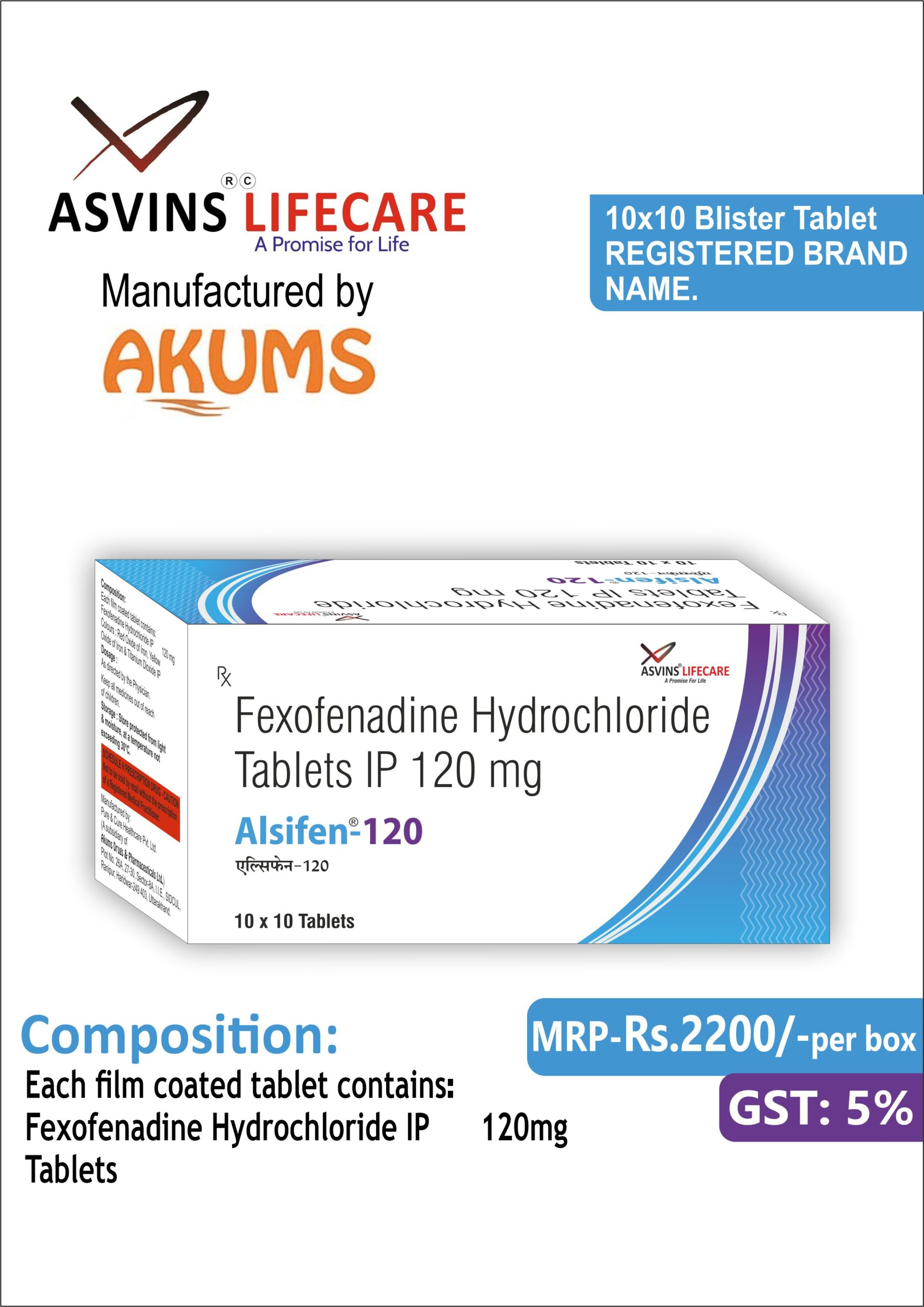 Fexofenadine Hydrochloride IP 180mg Tablets