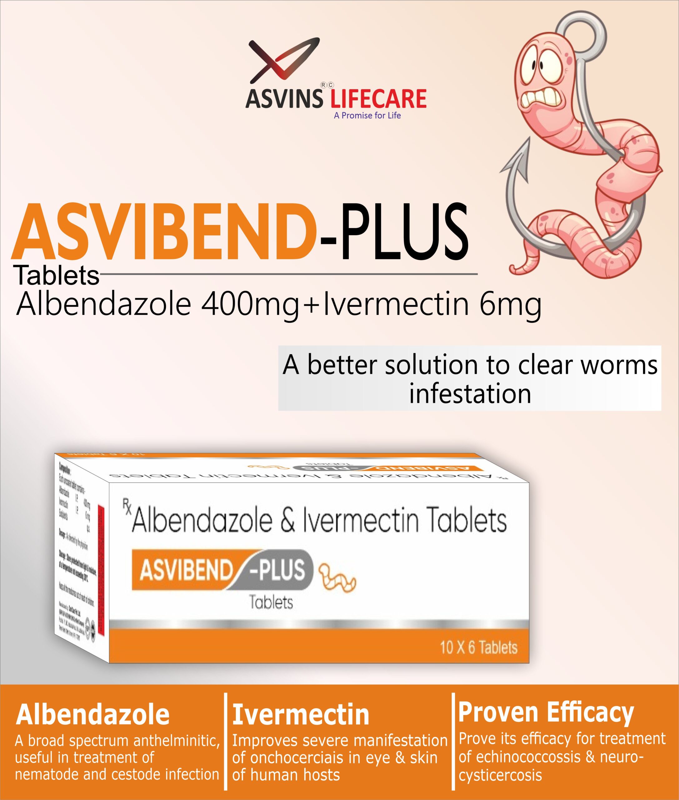 Albendazole 400mg+Ivermectin 6mg Tablets
