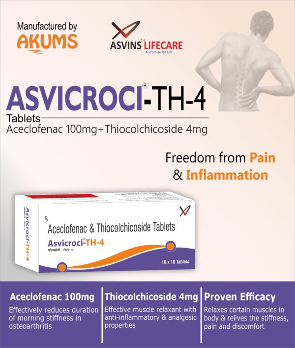 Aceclofenac IP 100mg+Thiocolchicoside IP 4mg Tablets