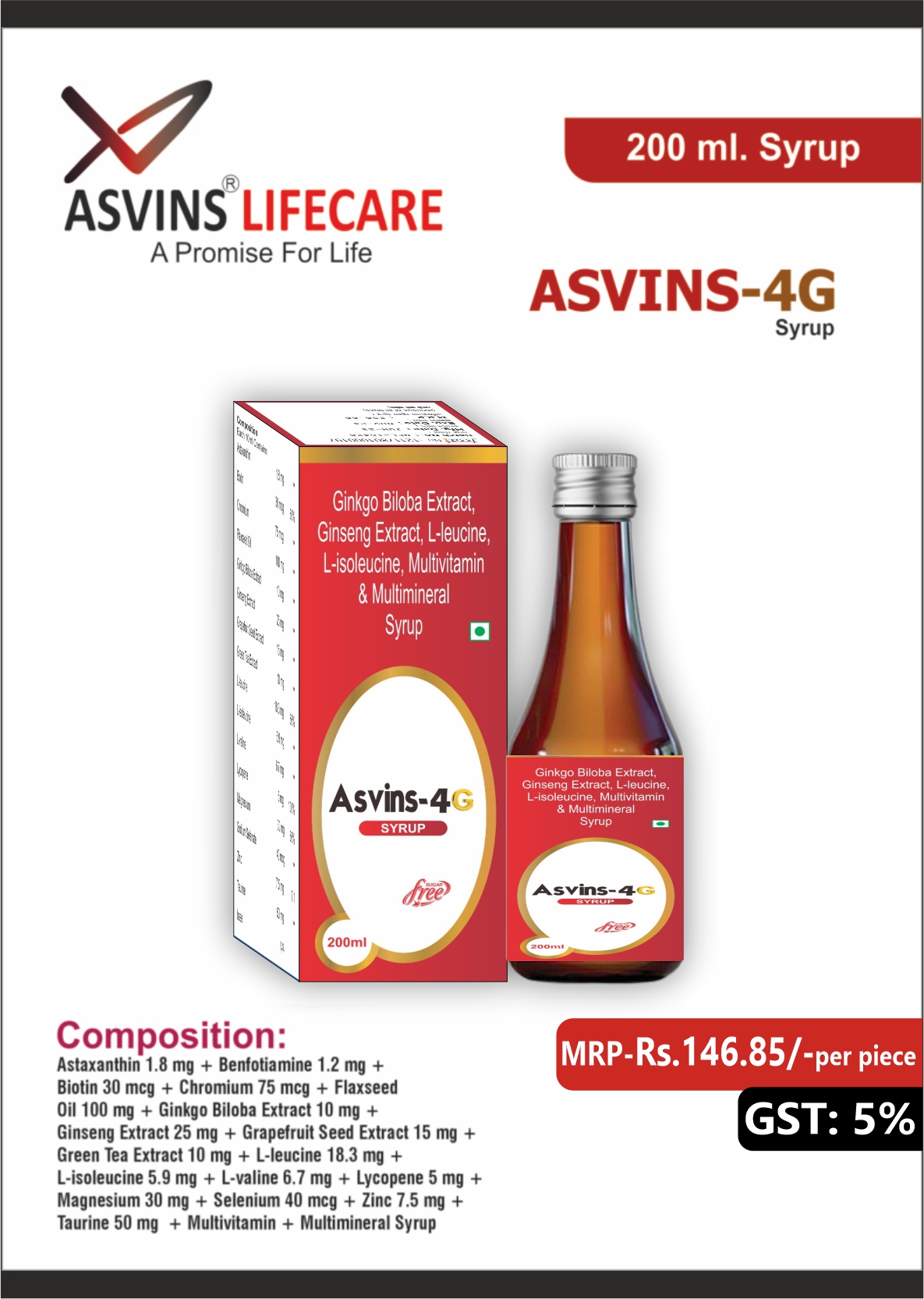 Astaxanthin 1.8mg+Benfotiamine 1.2mg+Biotin 30mcg+Chromium 75mcg+Flaxseed Oil 100mg+Gingko Biloba Extract 10mg+ Ginseng Extract 25mg+Grapefruit Seed Extract 15mg+Green Tea Extract 10mg+L-leucine 18.3mg+L-valine 6.7mg+Lycopene 5mg+Magnesium 30mg+Selenium40mcg+Zinc 7.5mg+Taurine 50mg+Multivitamin+Multimineral Syrup