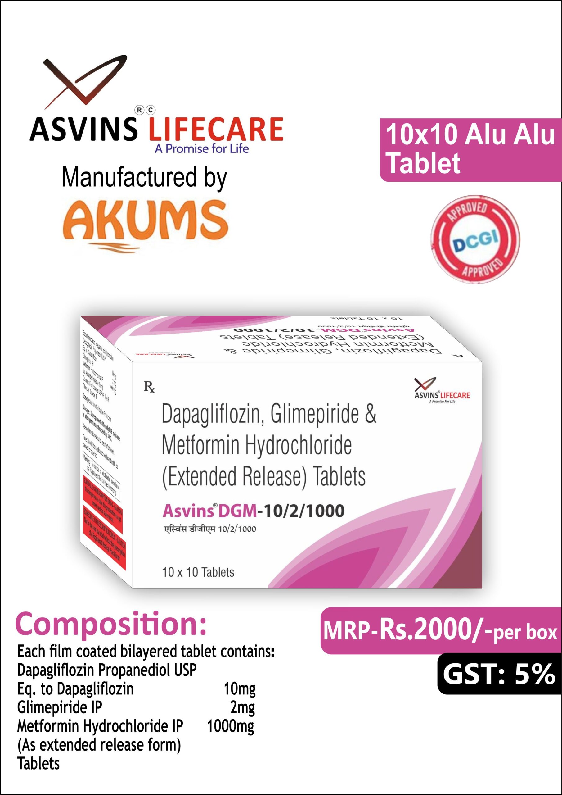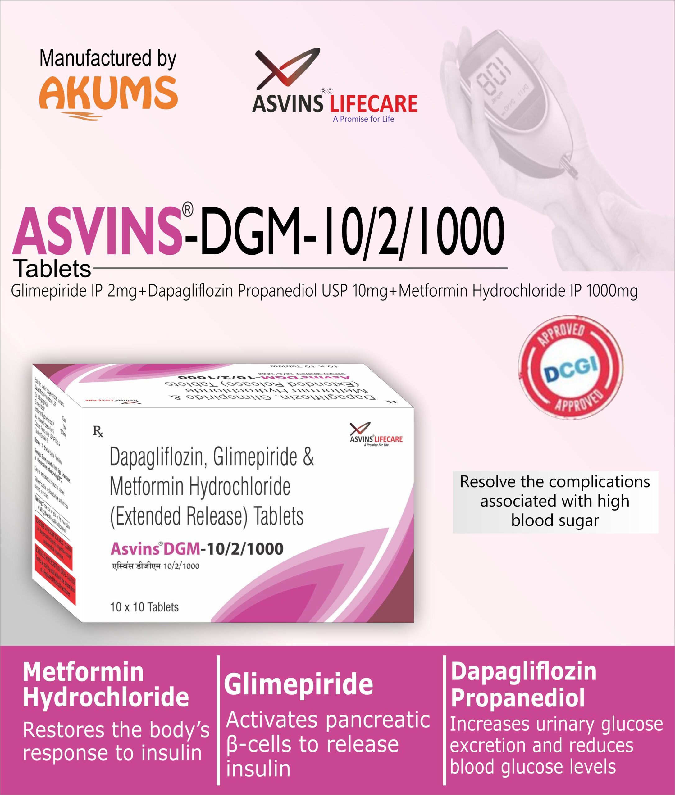 Glimepiride IP 2mg+Dapagliflozin Propanediol USP 10mg+Metformin Hydrochloride IP 1000mg