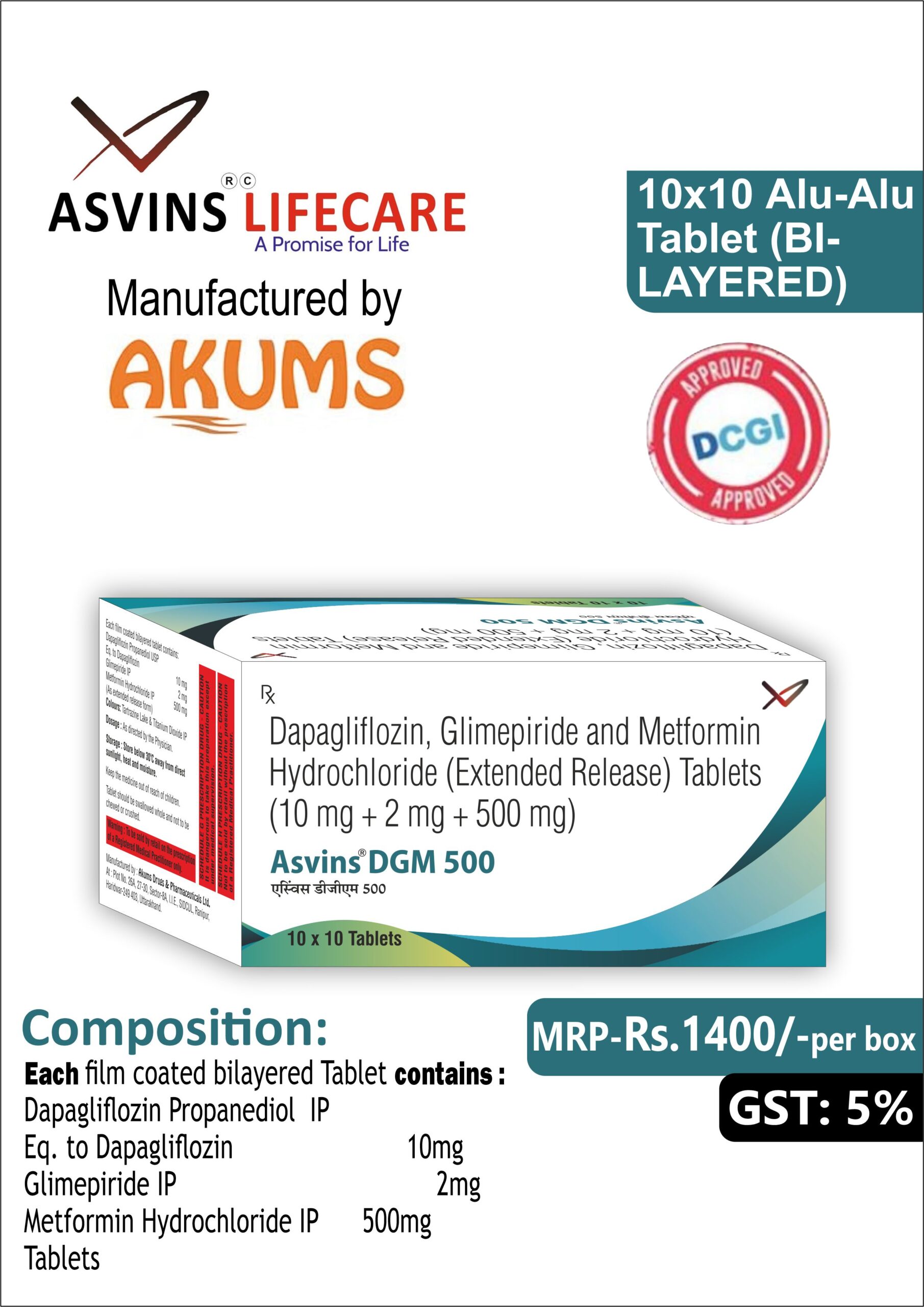 Glimepiride IP 2mg+Dapagliflozin Propanediol USP 10mg+Metformin Hydrochloride IP 500mg