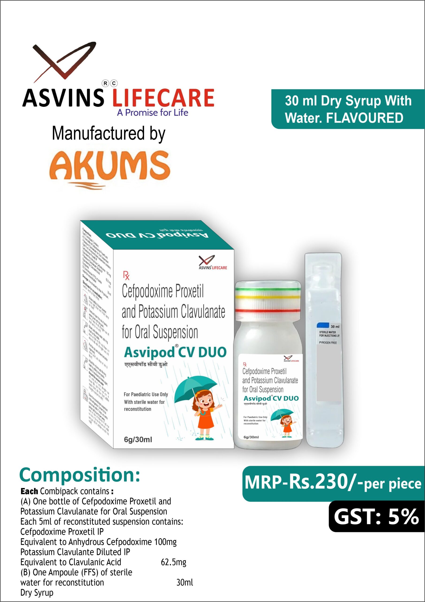 Cefpodoxime Proxetil IP 100mg+Potassium Clavulante Diluted IP 62.5mg