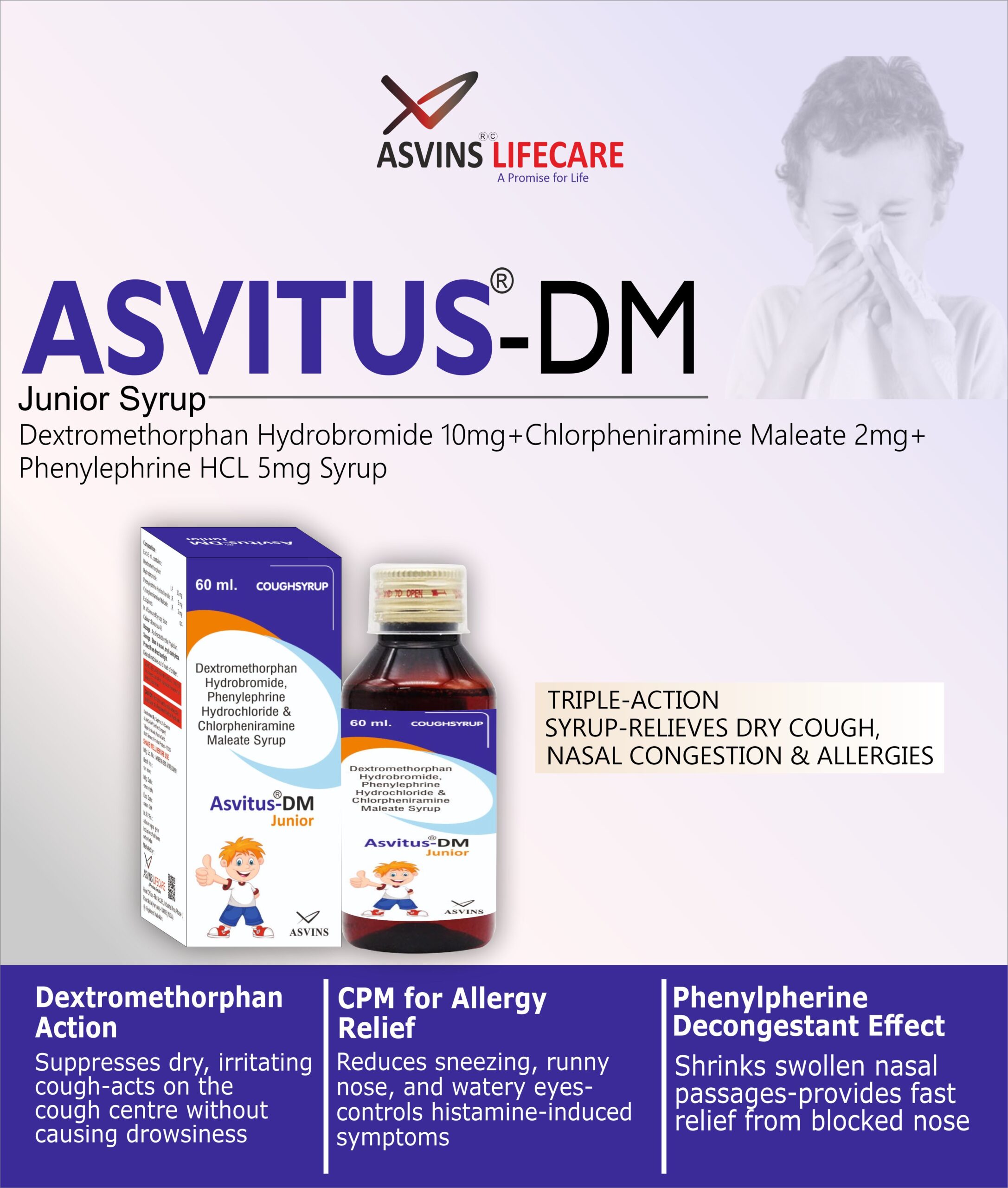 Dextromethorphan Hydrobromide 10mg+Chlorpheniramine Maleate 2mg+ Phenylephrine HCL 5mg Syrup