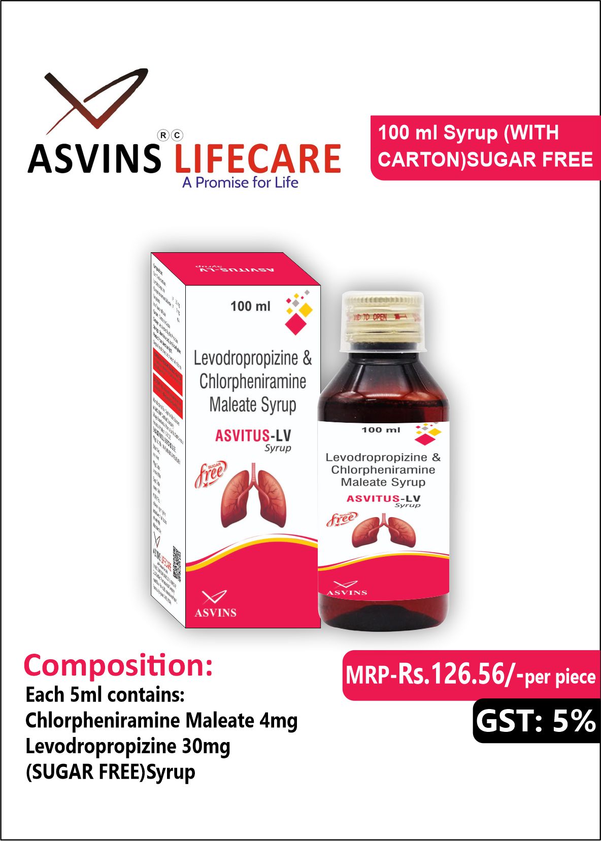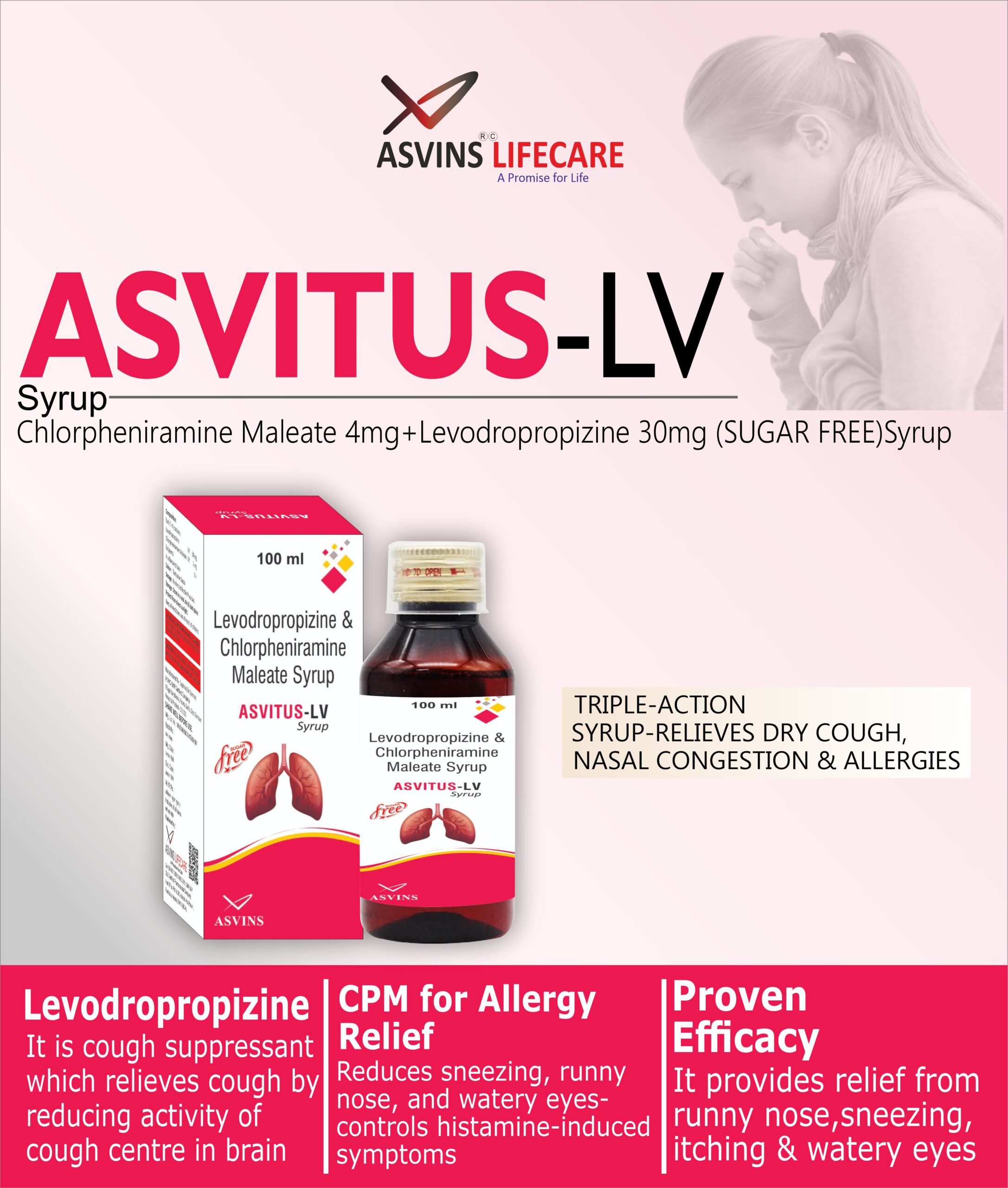 Chlorpheniramine Maleate 4mg+Levodropropizine 30mg (SUGAR FREE)Syrup
