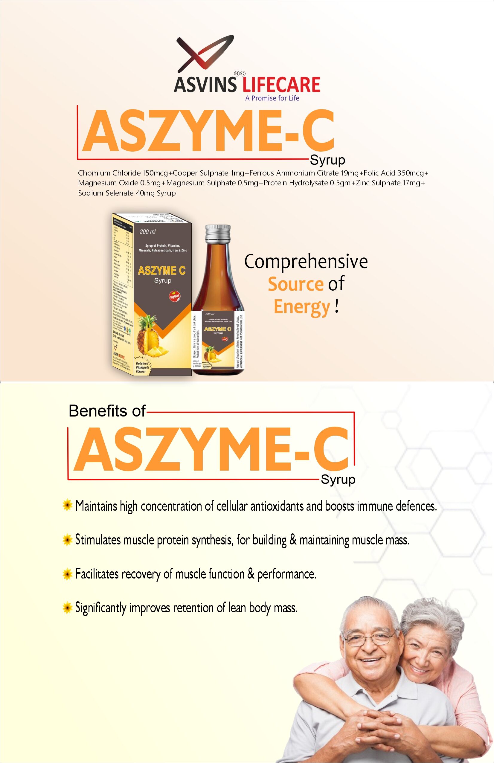 Chomium Chloride 150mcg+Copper Sulphate 1mg+Ferrous Ammonium Citrate 19mg+Folic Acid 350mcg+ Magnesium Oxide 0.5mg+Magnesium Sulphate 0.5mg+Protein Hydrolysate 0.5gm+Zinc Sulphate 17mg+ Sodium Selenate 40mg Syrup