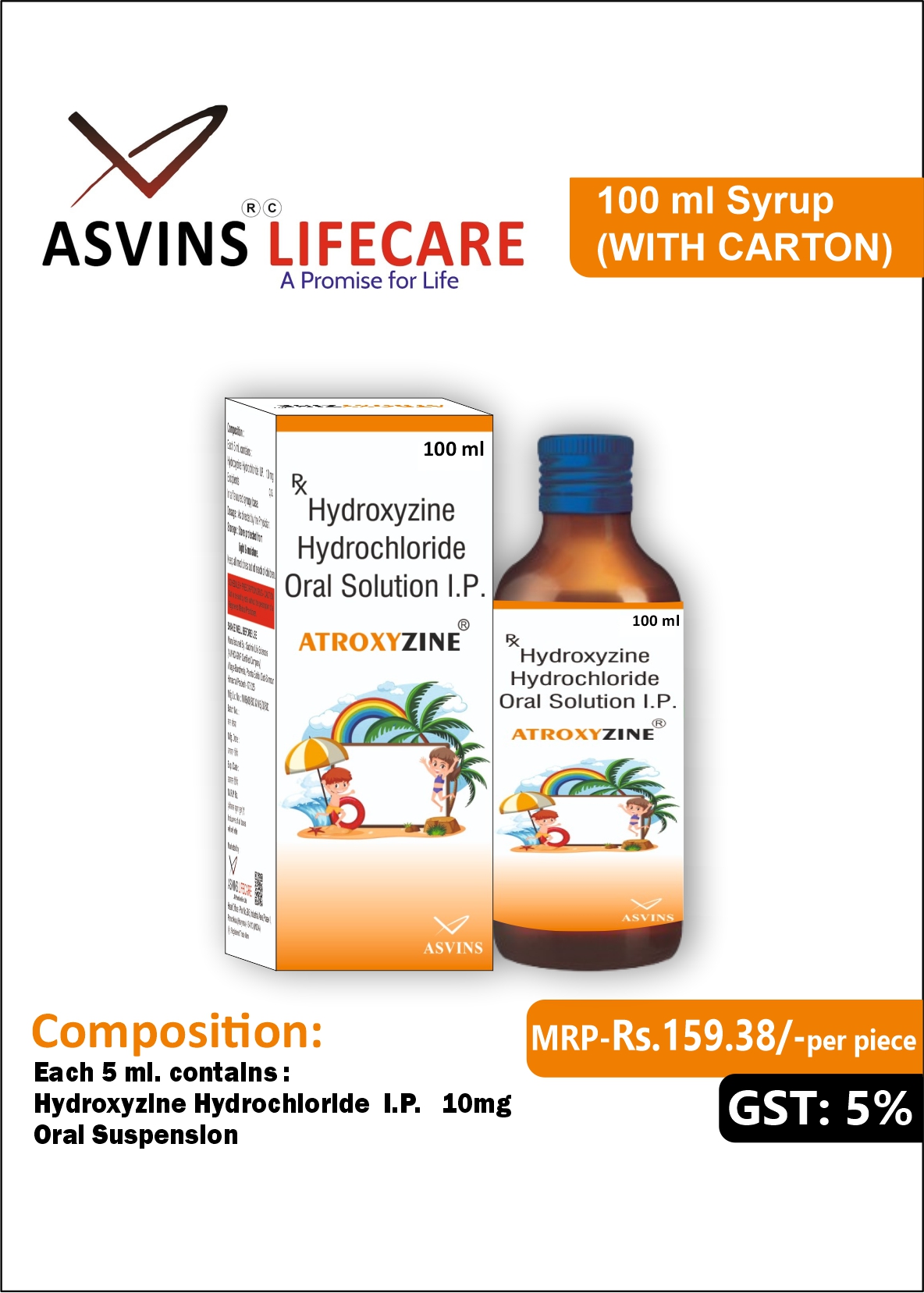 Hydroxyzine Hydrochloride IP 10mg Syrup