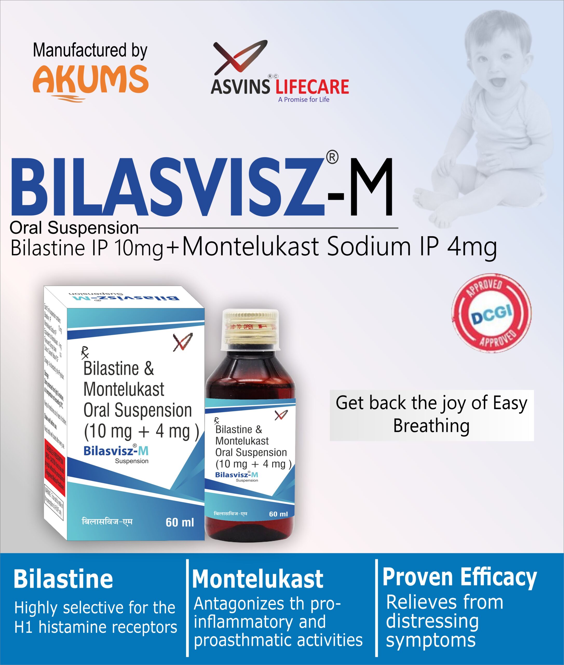 Bilastine IP 10mg+Montelukast Sodium IP 4mg Oral Suspension