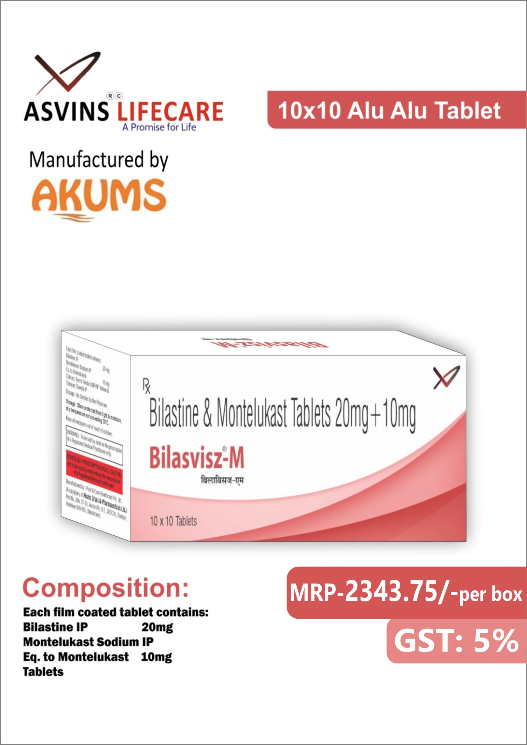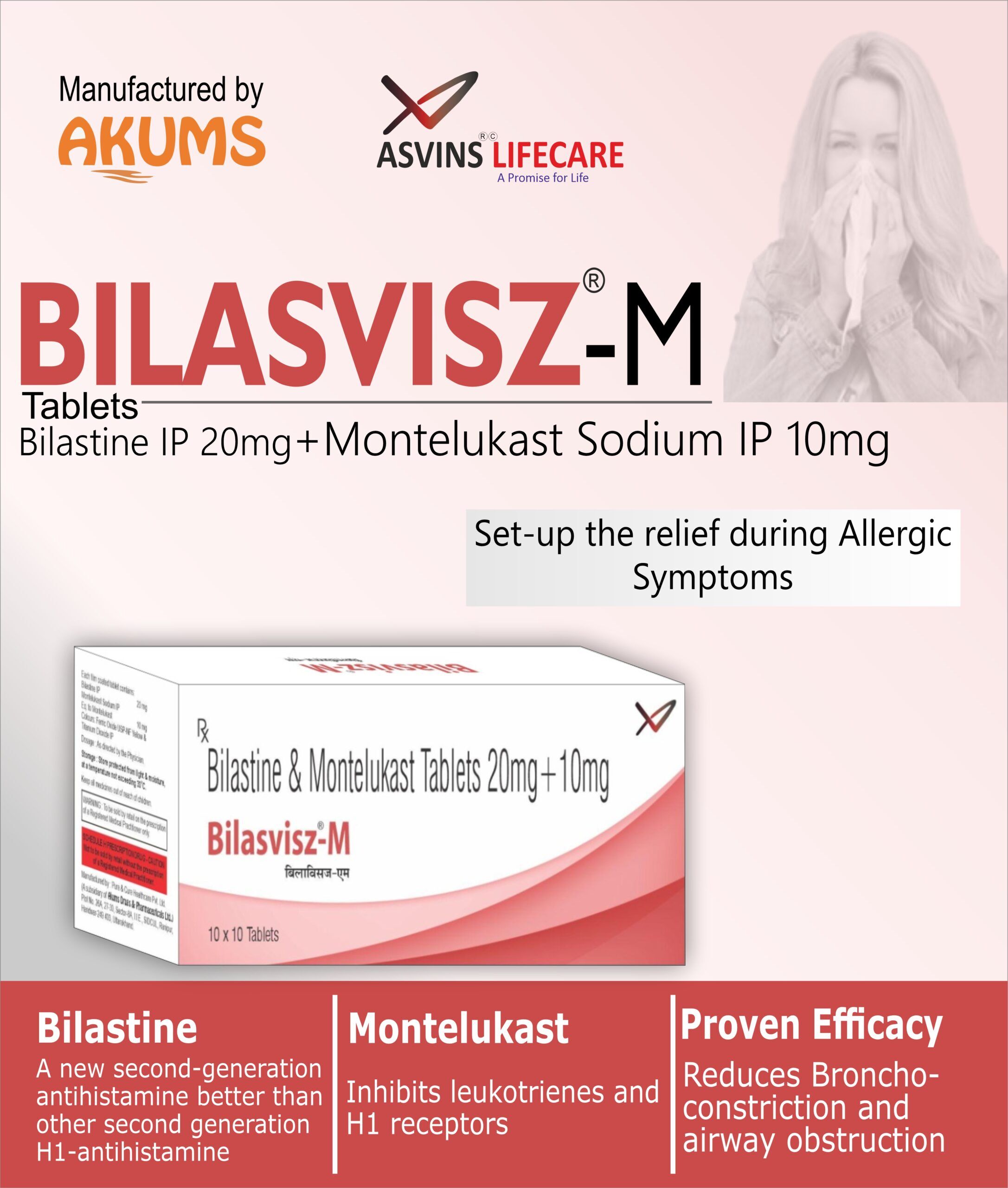 | Composition | Bilastine 20mg Montelukast 10gm Tablets |