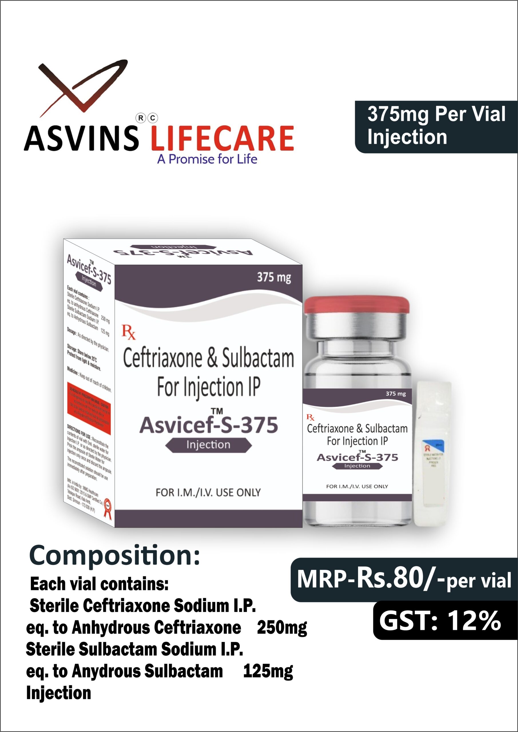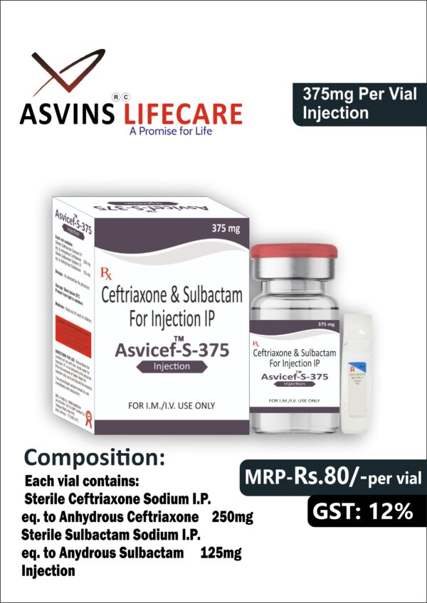 Ceftriaxone Sodium IP 250mg+Sulbactam Sodium IP 125mg Injection