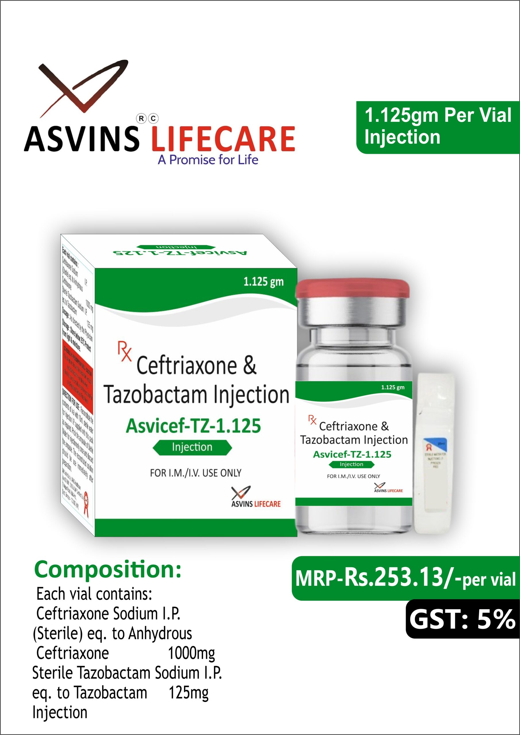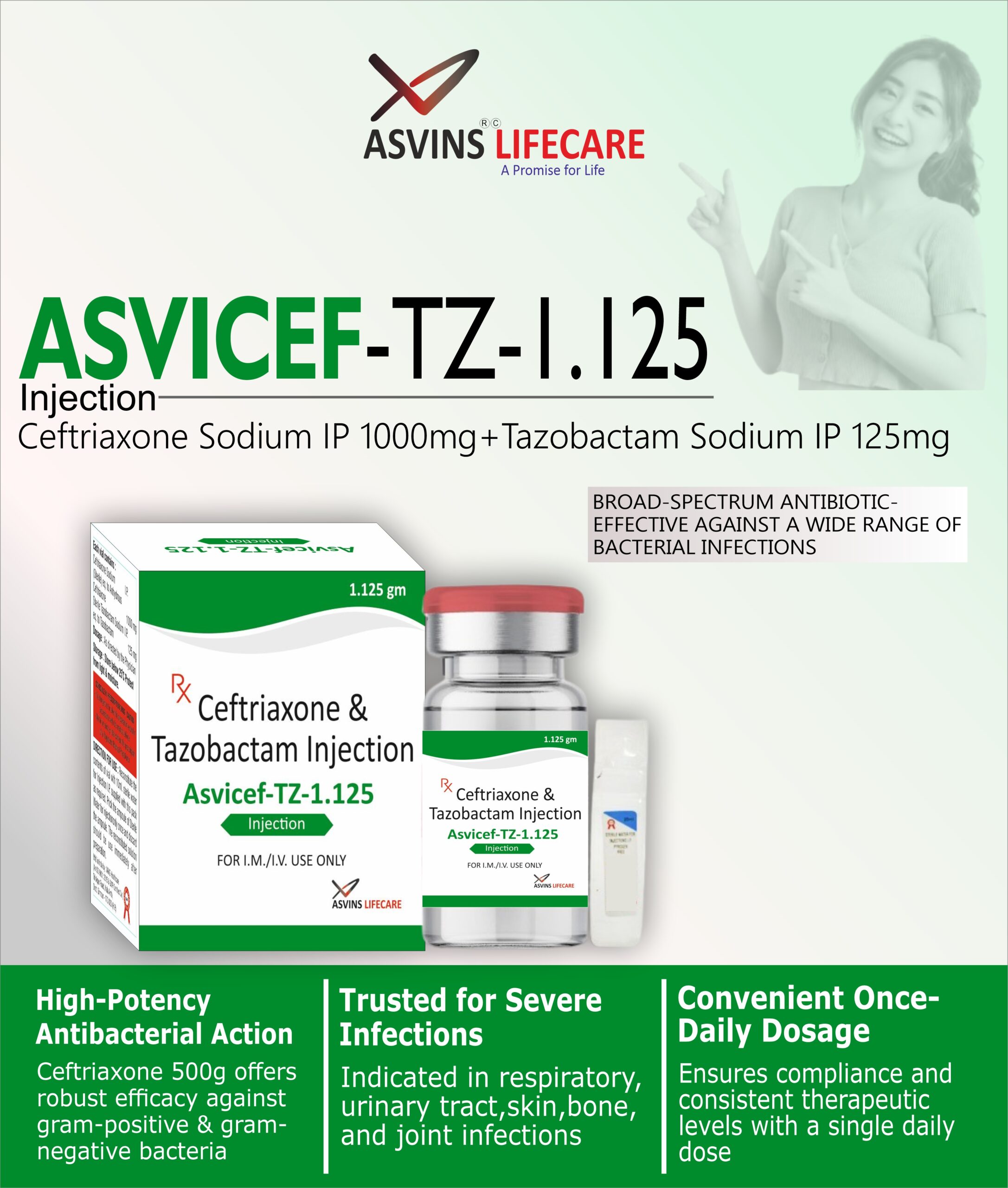 Ceftriaxone Sodium IP 1000mg+Tazobactam Sodium IP 125mg Injection