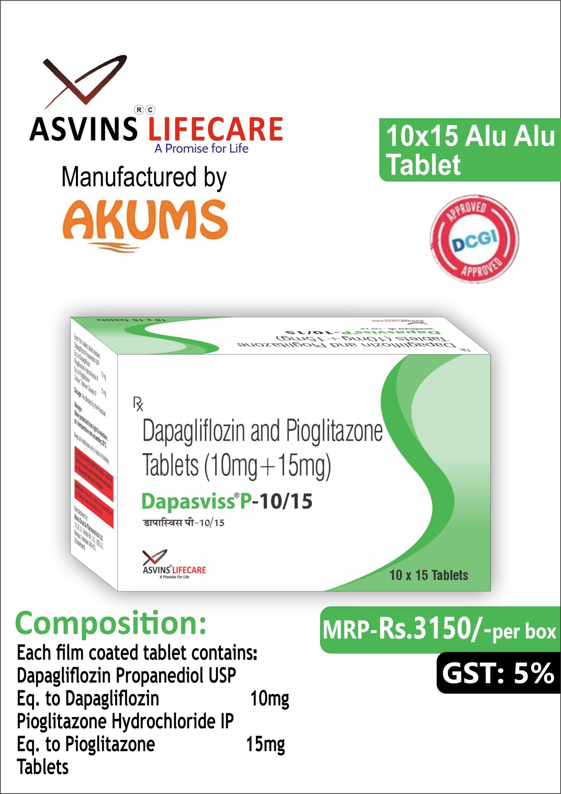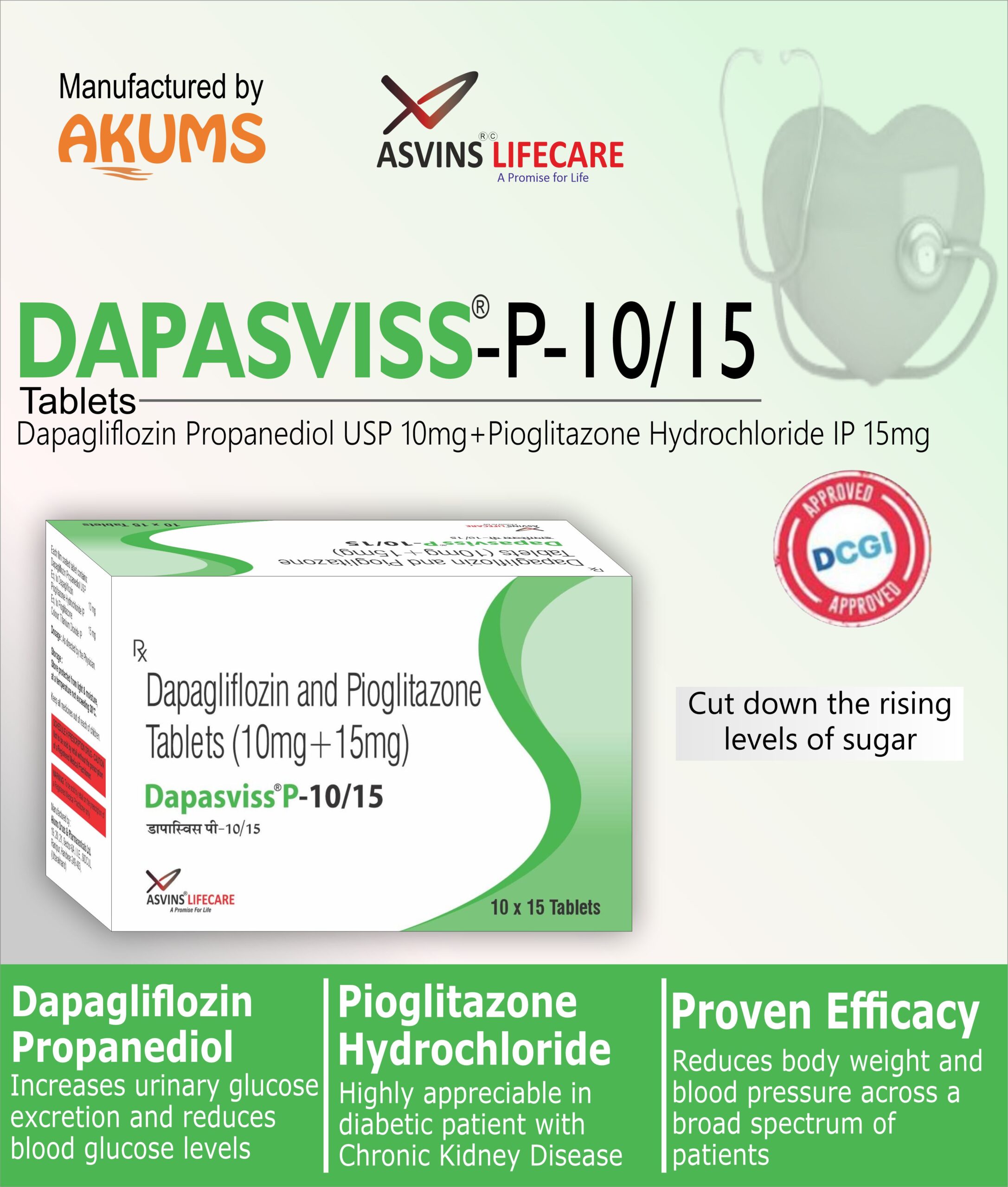 Dapagliflozin Propanediol USP 10mg+Pioglitazone Hydrochloride IP 15mg