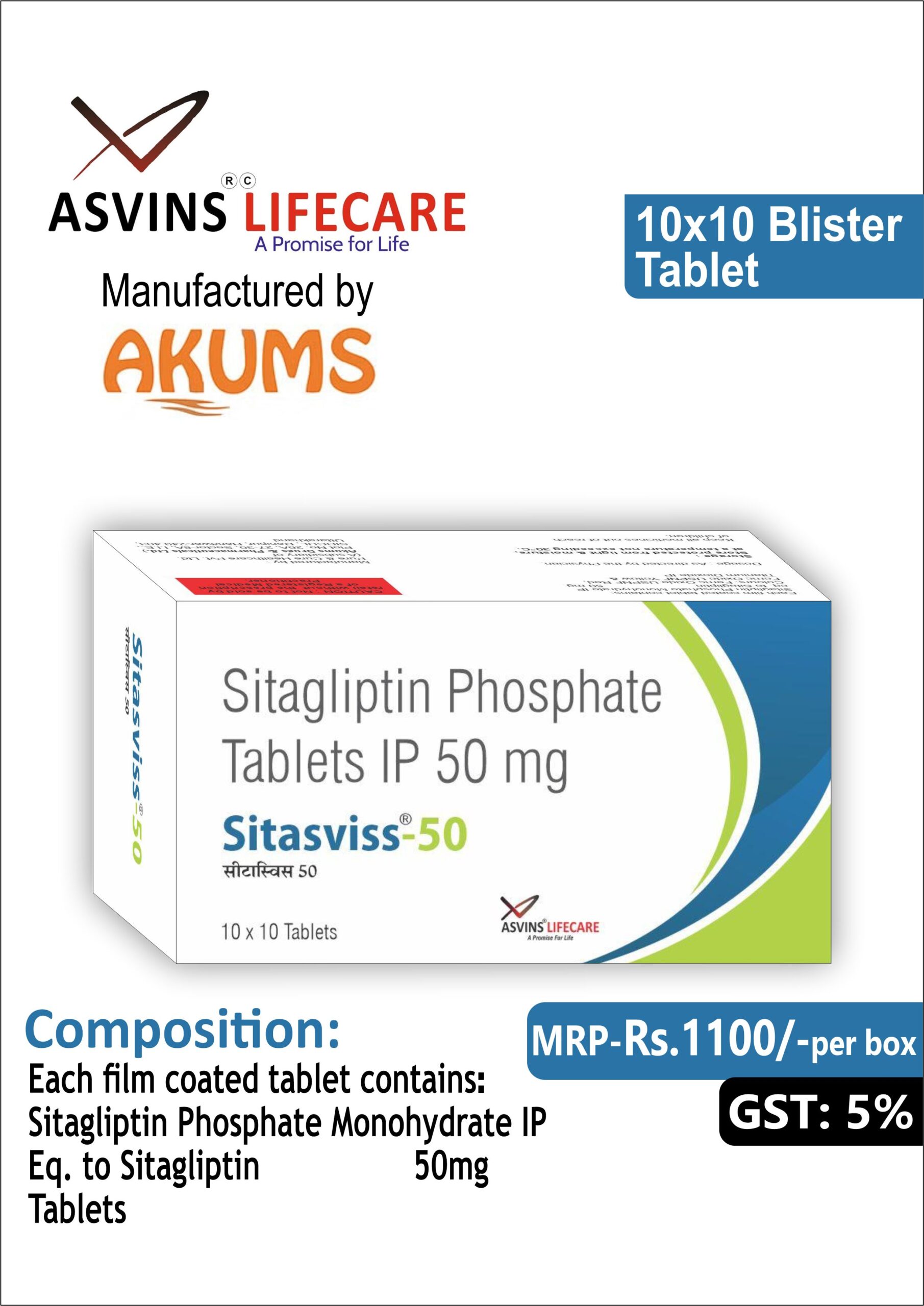 Sitagliptin Phosphate Monohydrate IP 50mg
