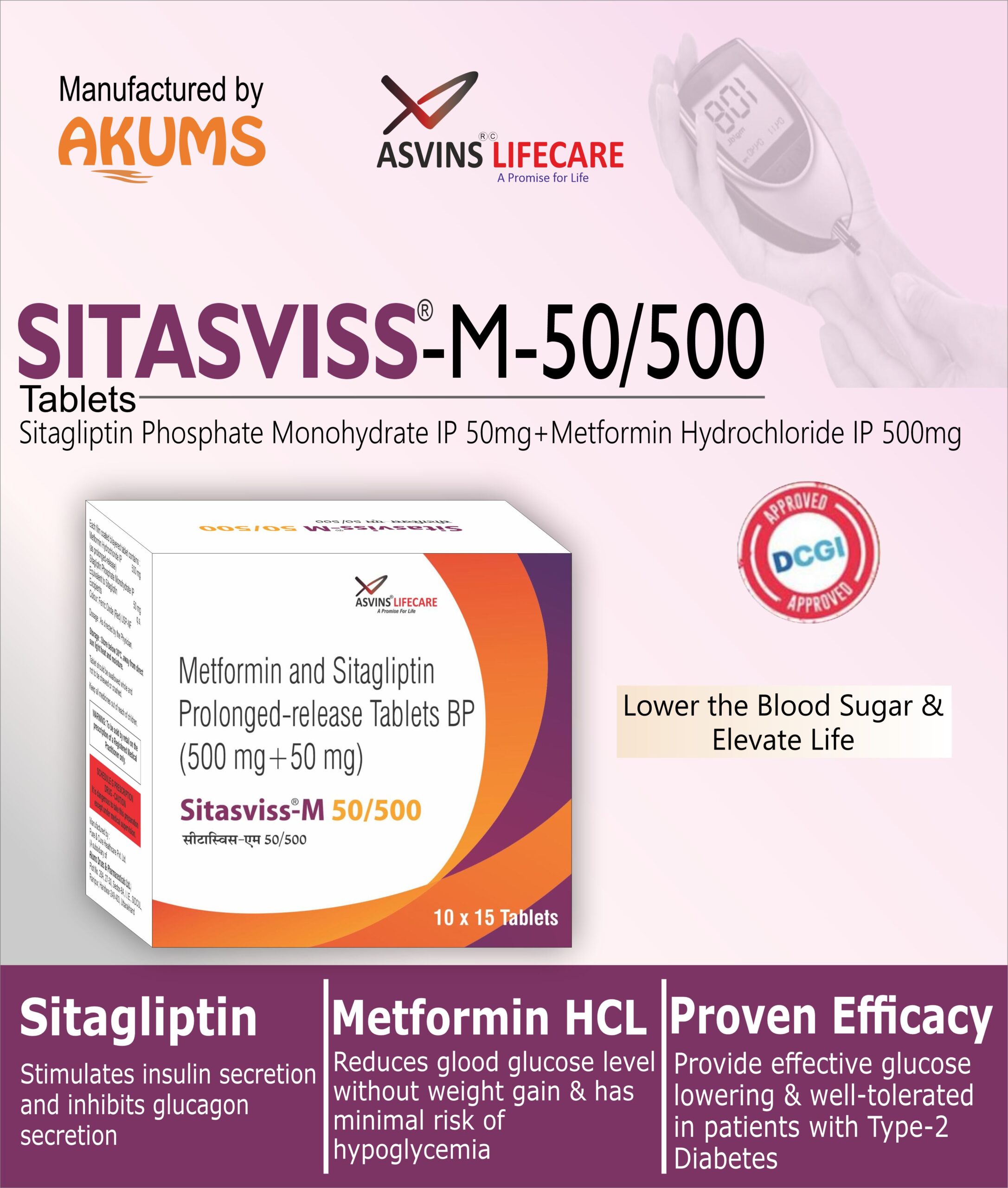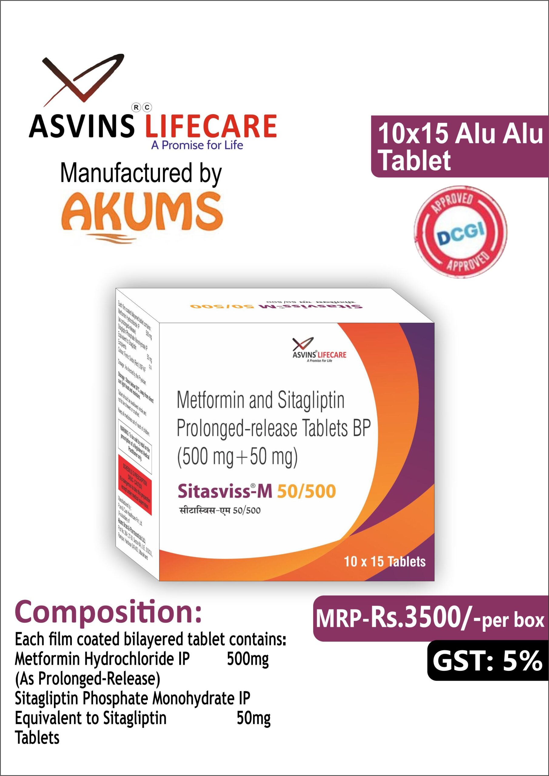 Sitagliptin Phosphate Monohydrate IP 50mg+Metformin Hydrochloride IP 500mg