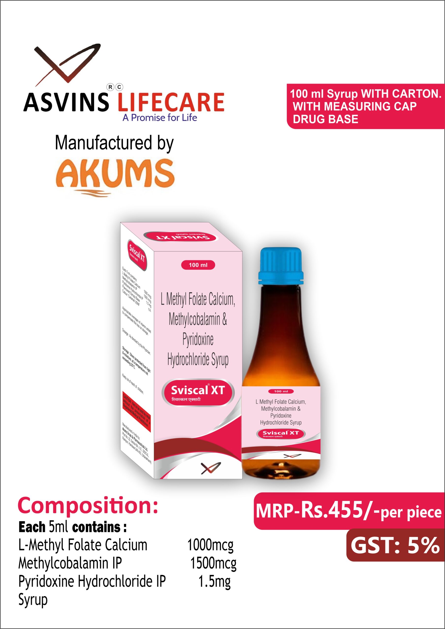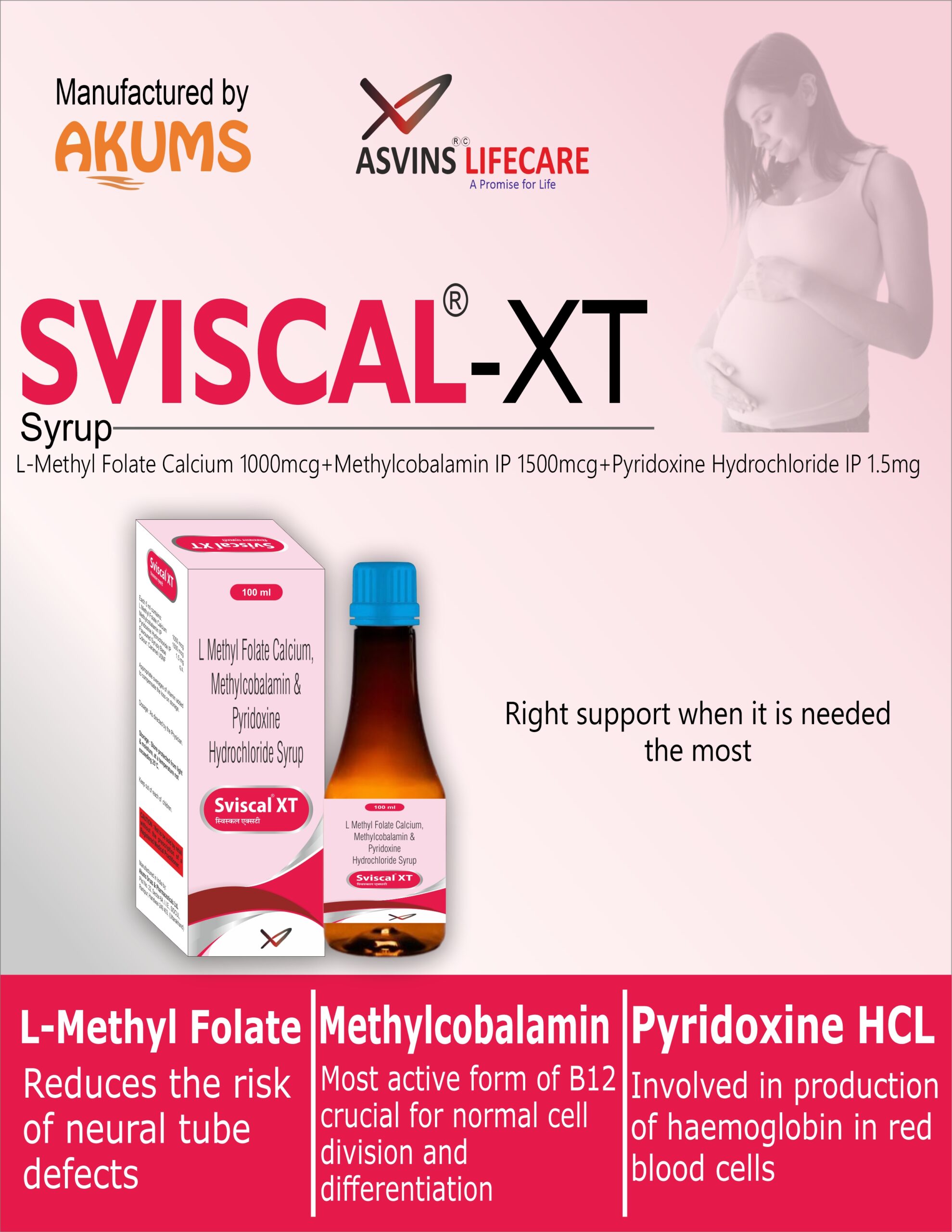 L-Methyl Folate Calcium 1000mcg+Methylcobalamin IP 1500mcg+Pyridoxine Hydrochloride IP 1.5mg Syrup