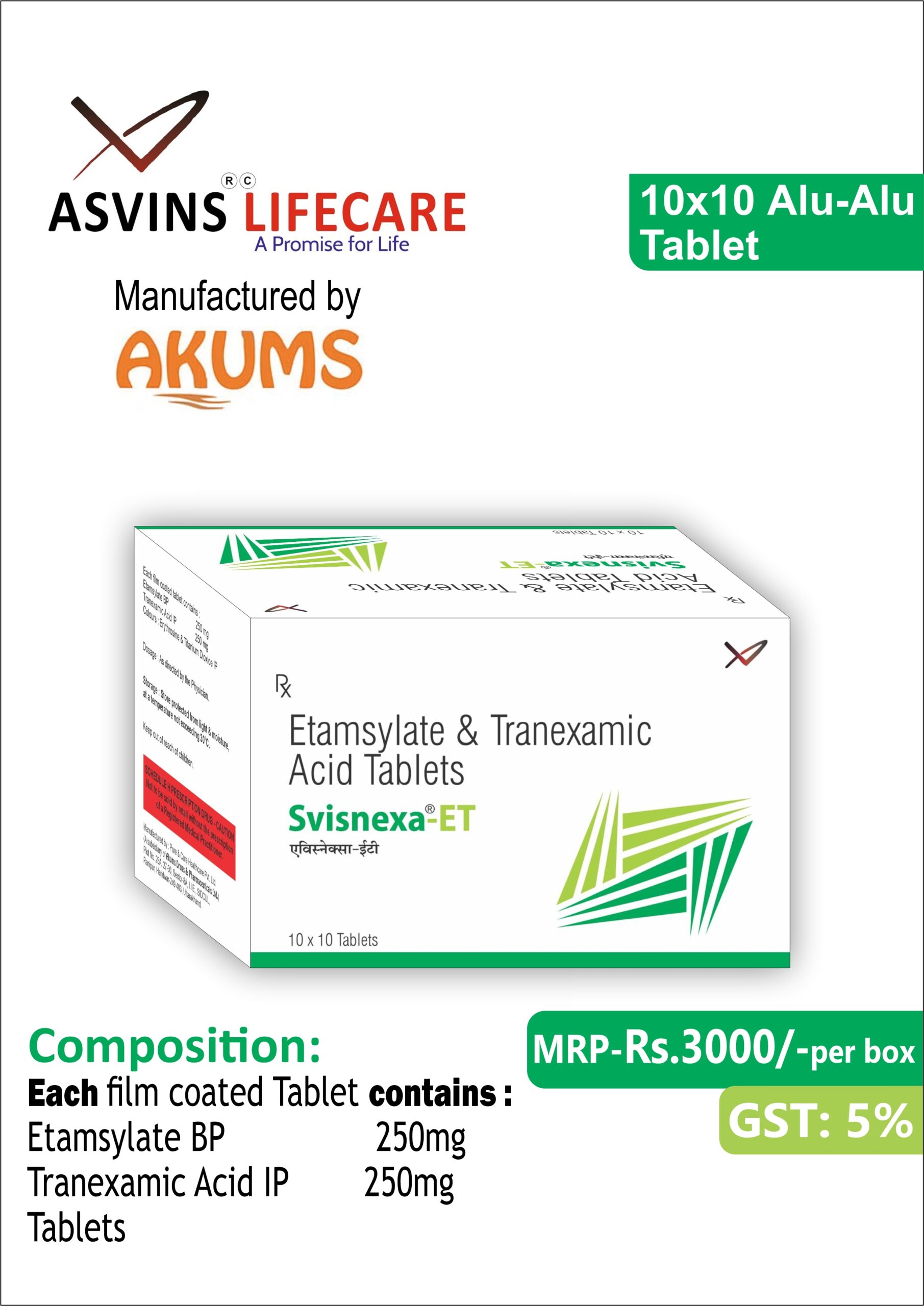 Etamsylate BP 250mg+Tranexamic Acid IP 250mg Tablets