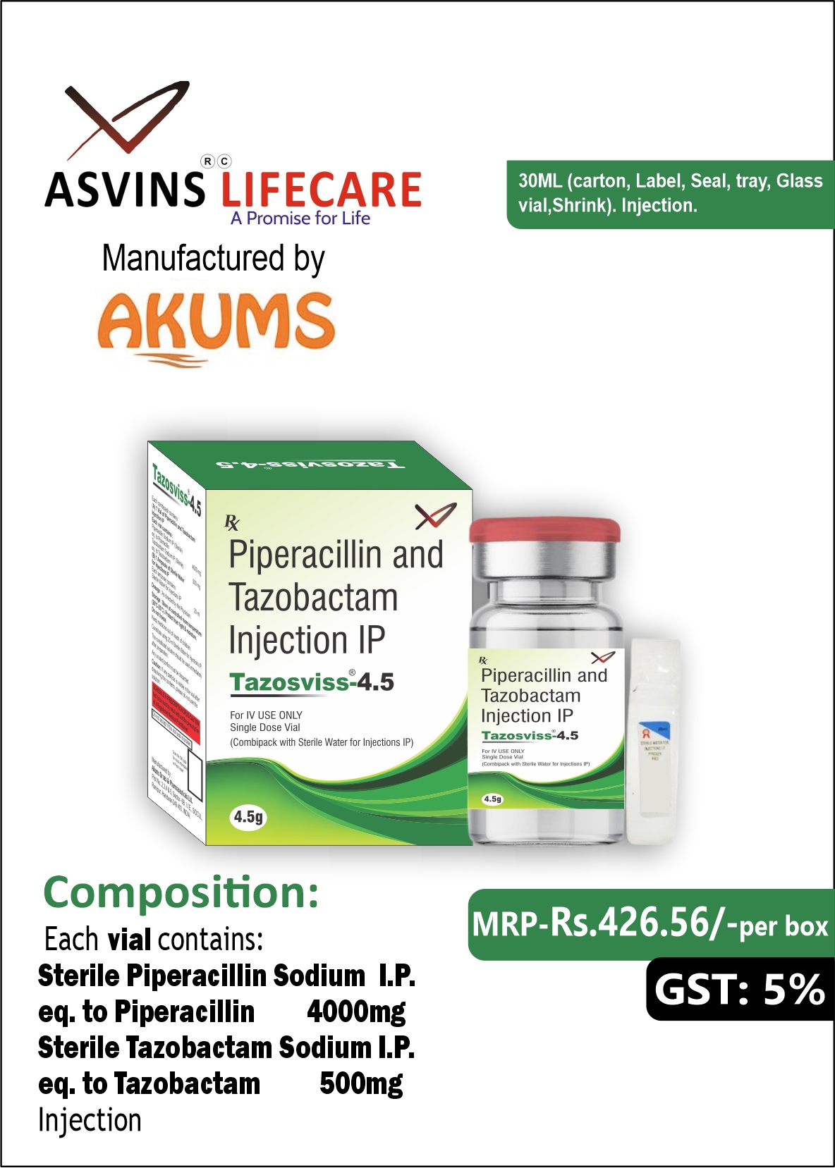 Piperacillin Sodium IP 4000mg+Tazobactam Sodium IP 500mg Injection