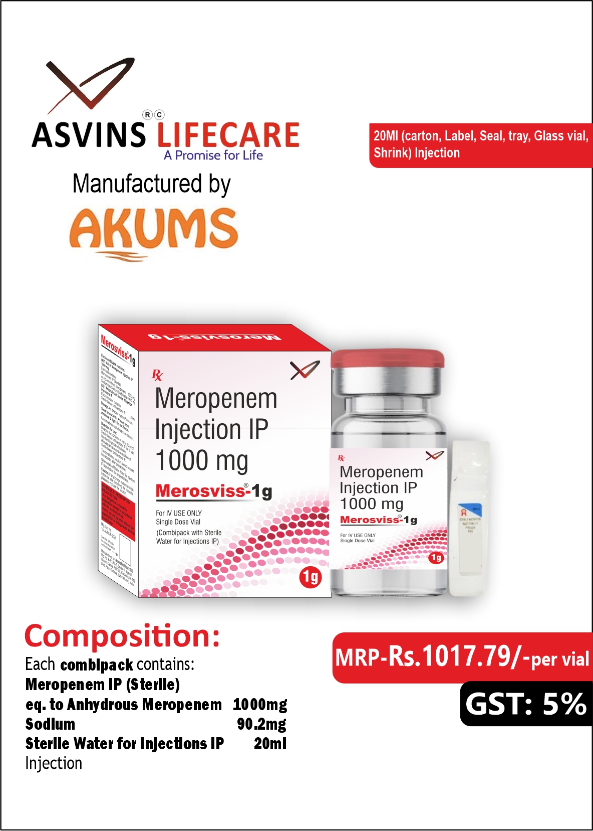 Sterile Meropenem IP 1000mg+Sodium Carbonate IP 90.2mg Injection