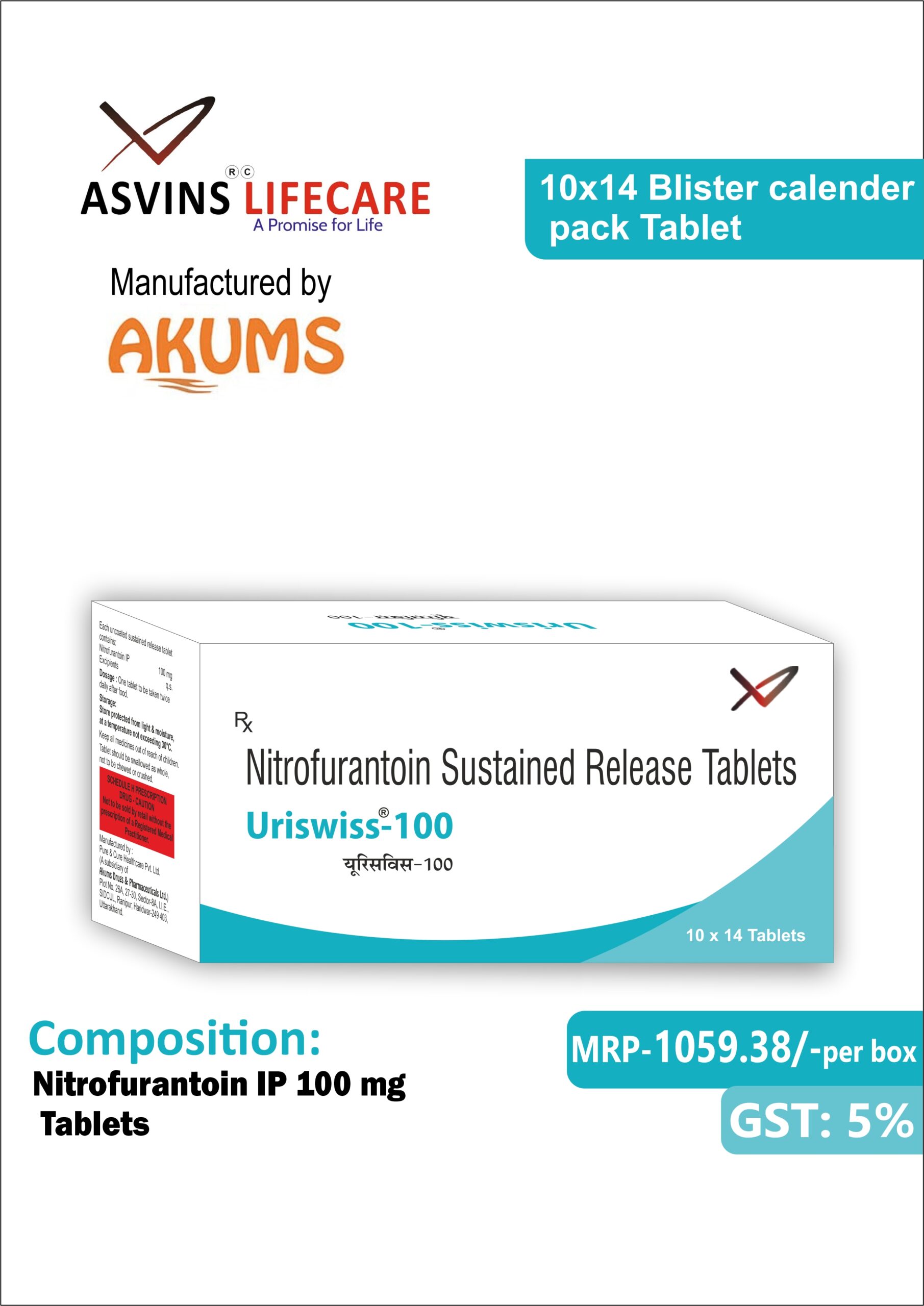 | Composition | Nitrofurantoin Sustained Release Tablets 100mg |