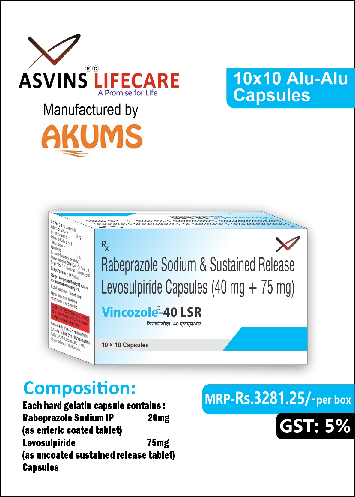 Rabeprazole Sodium IP 20mg+Levosulpiride 75mg Capsules