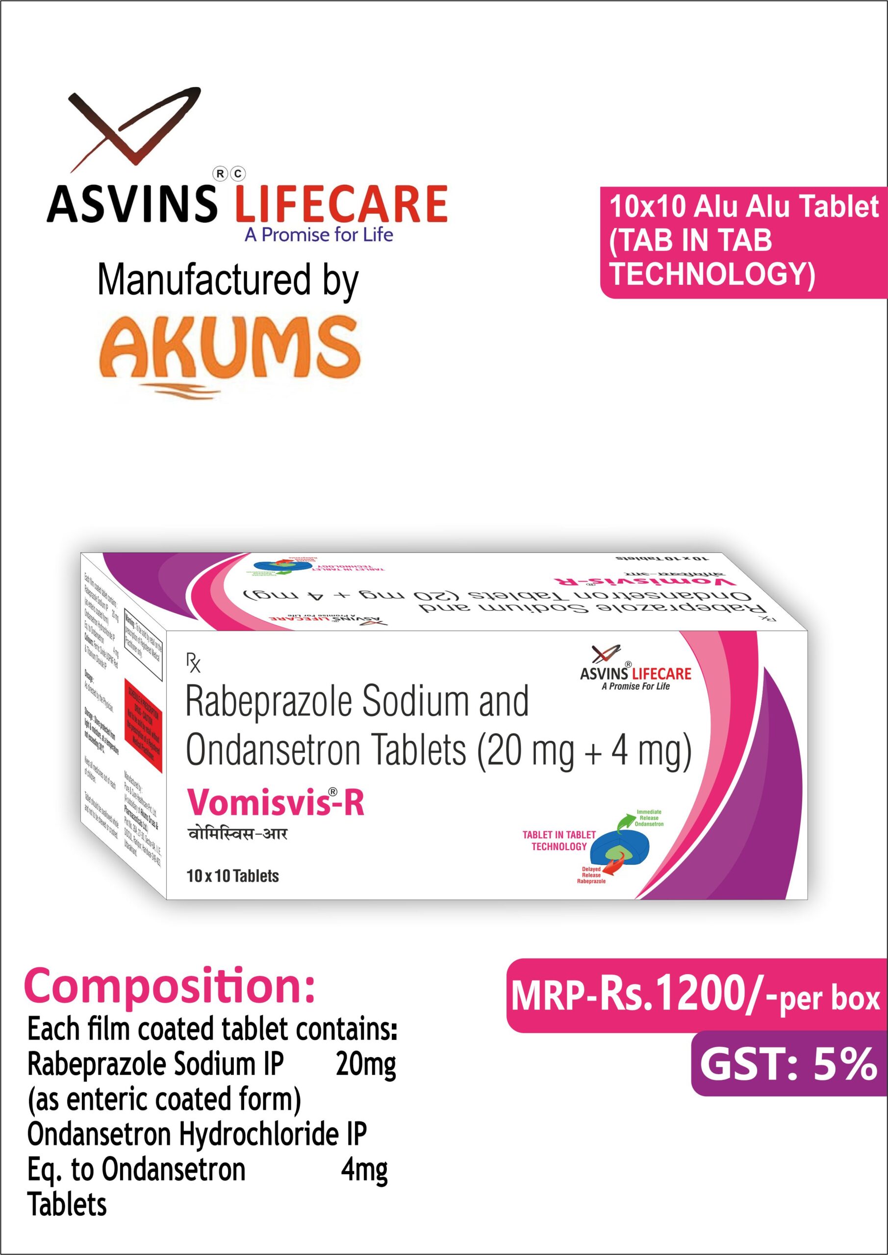 Rabeprazole Sodium IP 20mg (as enteric coated form)+Ondansetron Hydrochloride IP 4mg